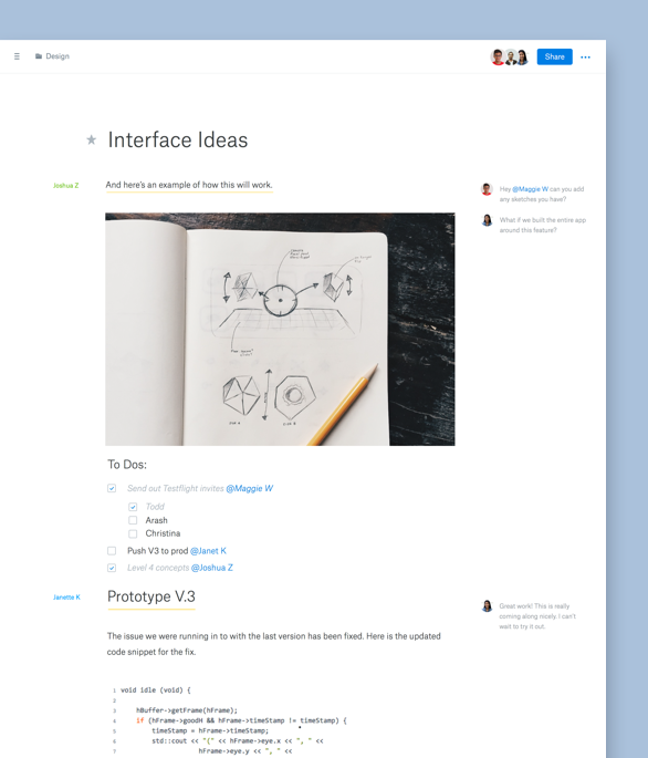 Capture and build on ideas together in Dropbox Paper. It’s the best way to collaborate with your team.
